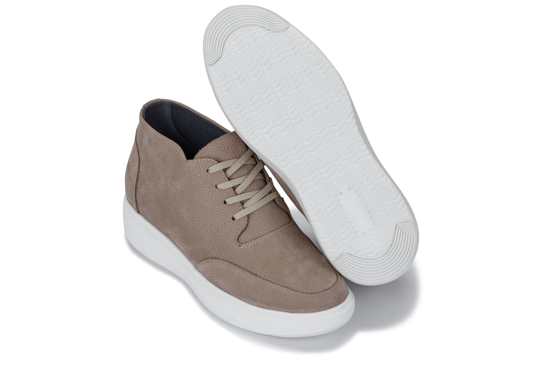 CALTO - J1770 - 3.2 Inches Taller (Khaki) - Casual Chunky Sole Boots – Soft Pebble Grain Nubuck Leather