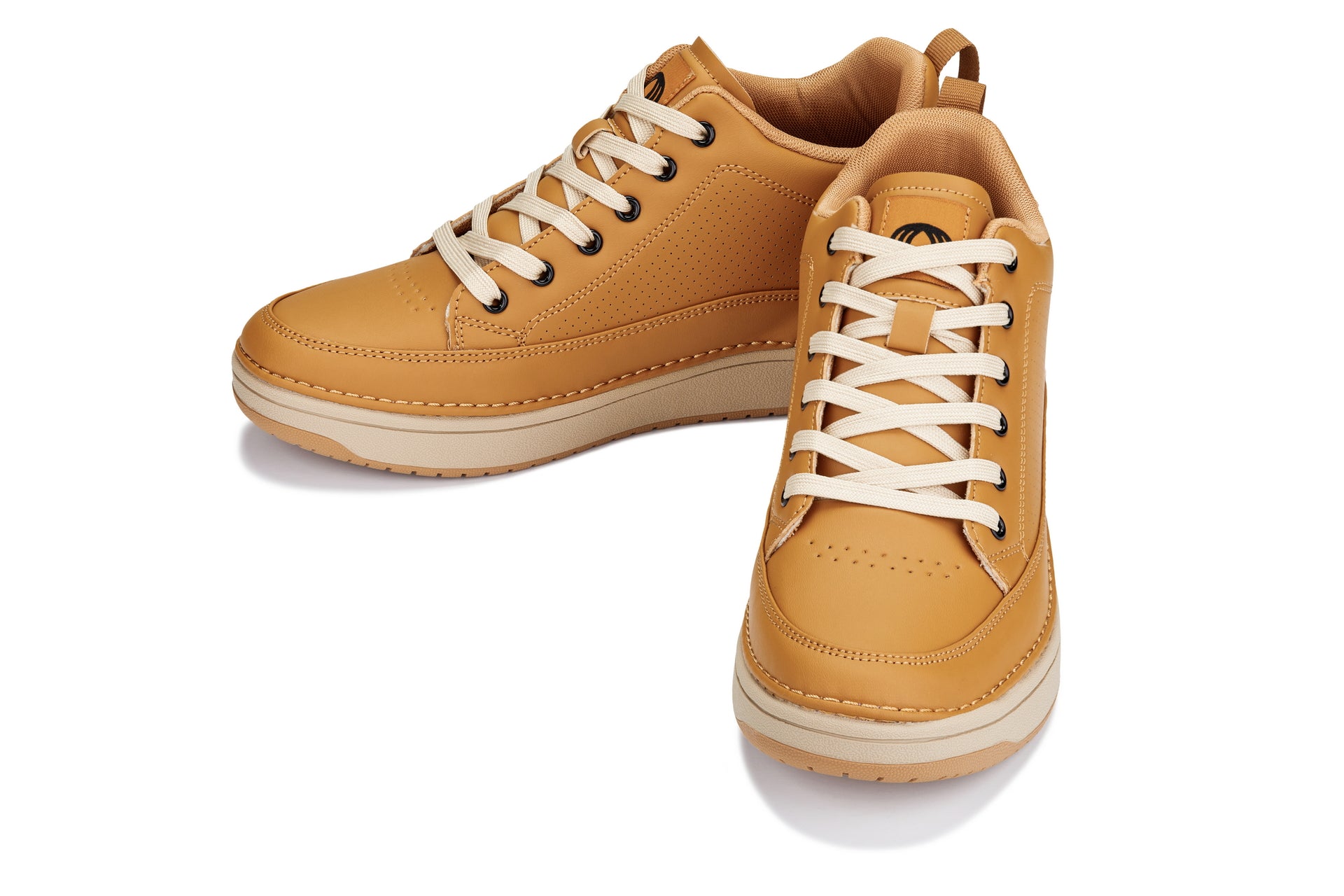 CALTO - Q274 - 2 Inches Taller (Camel Brown & Gum Sole) - Elevated Leatherette Micro-Perforated Sneakers