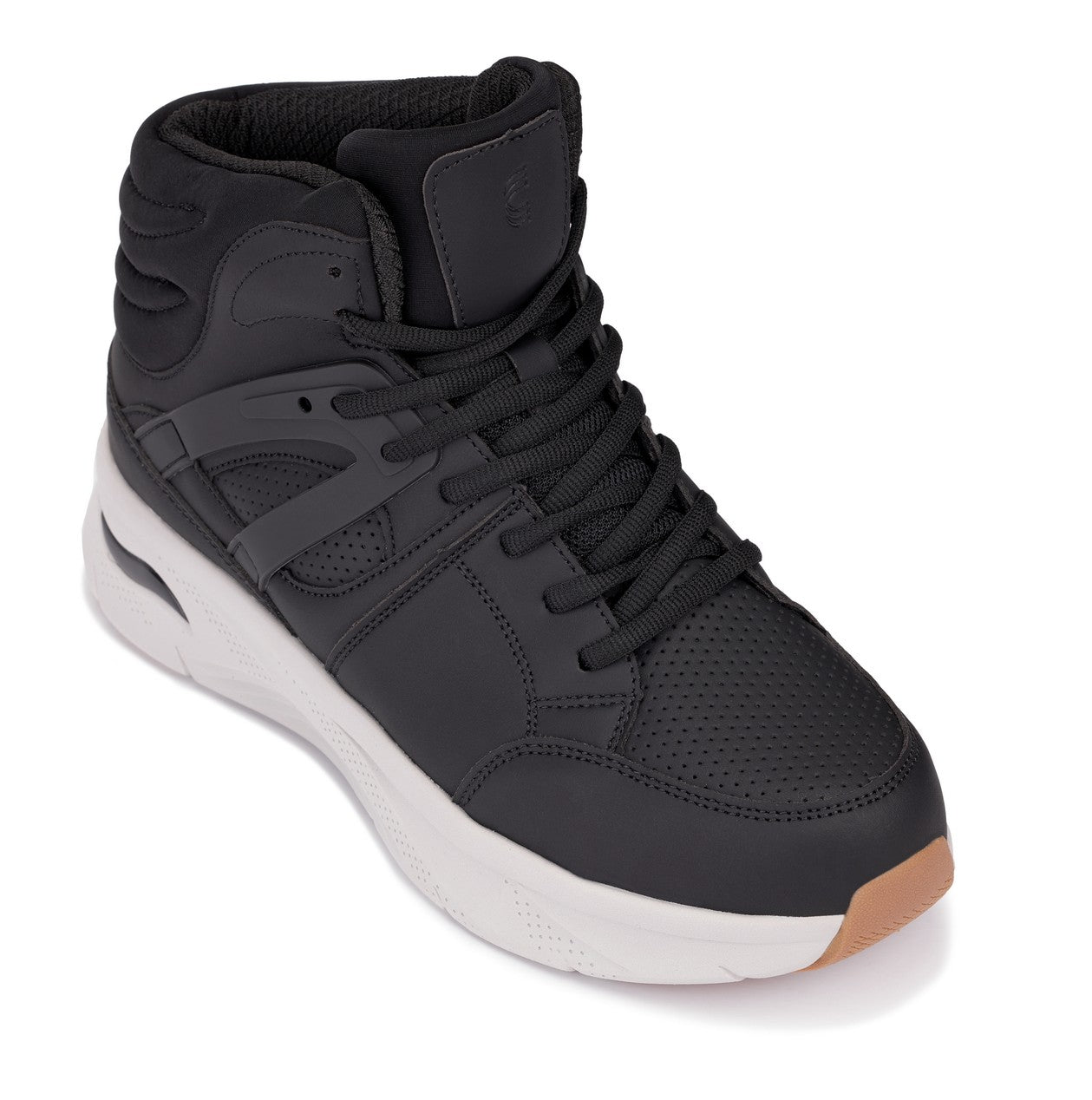 Command the court with the S23411, a sophisticated high-top height-boosting sneaker designed for serious athletes and style-forward individuals. This premium silhouette combines sleek matte-finish synthetic construction with perforated mesh ventilation, anatomical lace support, and enhanced ankle padding for optimal performance and comfort. Perfect for those demanding both elevation and professional polish without sacrificing functional quality.