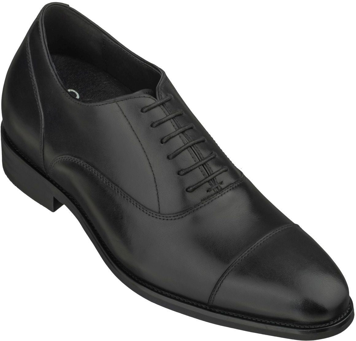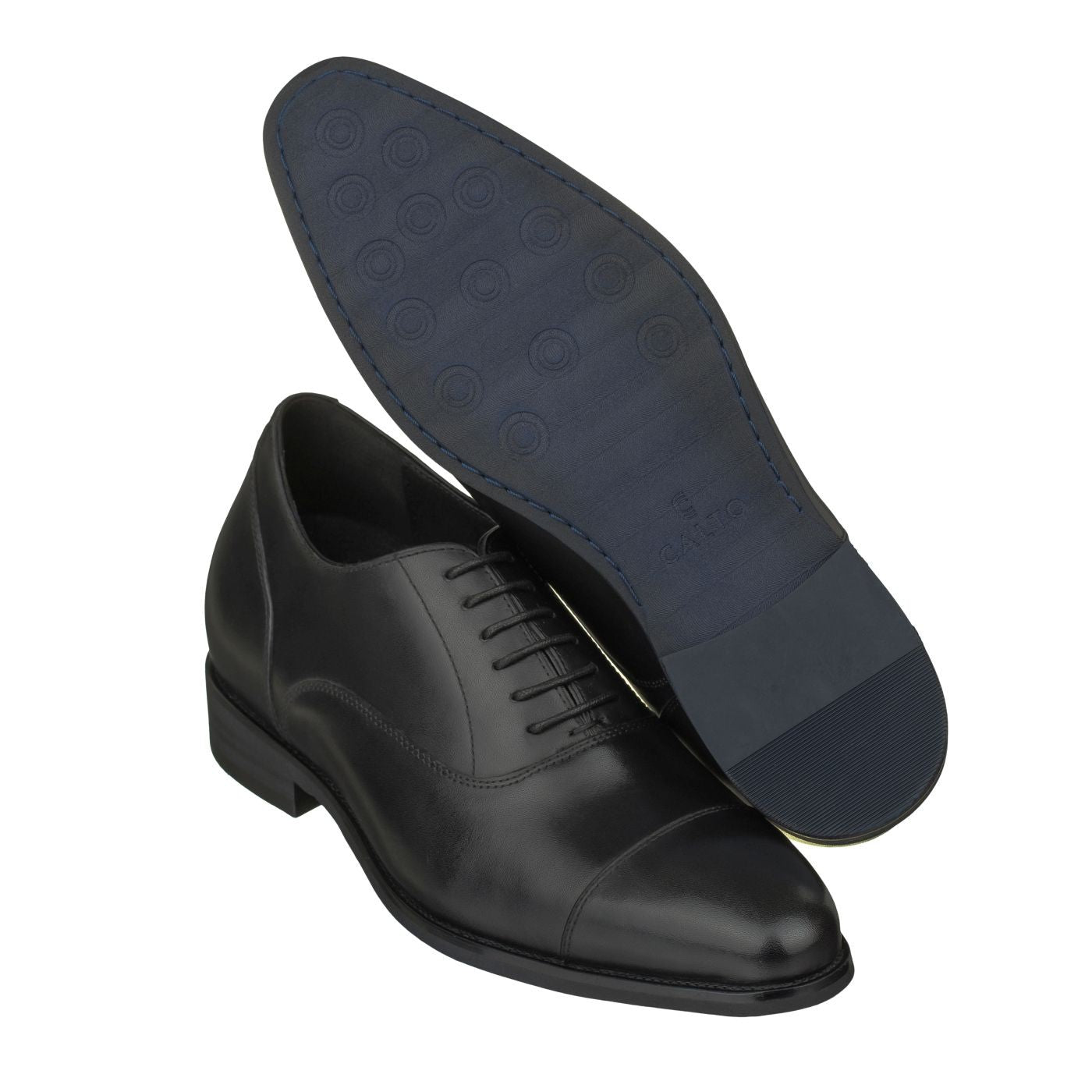 This CALTO elevator dress shoe embodies formal rules in the most classic sense. Lightly polished quality oxhide in a neutral hue gives way to a paneled, cap-toe appearance while closed lacing and a non-padded collar highlight its versatilely elegant character. Yet, these men's dress shoes are ideal for the modern man wanting to do things on his own terms. As such, we've shaved down the weight for a lighter feel and added a lift of three inches.