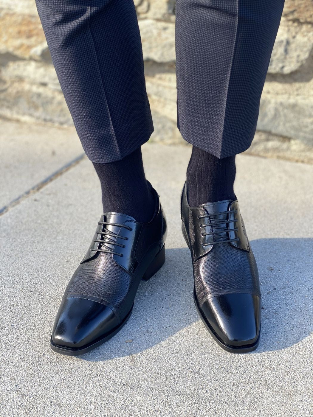 Versatile Elegance for Every Occasion Whether you’re the groom at a wedding, a keynote speaker, or looking to sharpen your daily office attire, the sleek black finish and rubberized traction sole offer the perfect blend of luxury and stability. Pair them with a tailored tuxedo, charcoal suit pants, or crisp chinos for an instantly taller, more confident profile.